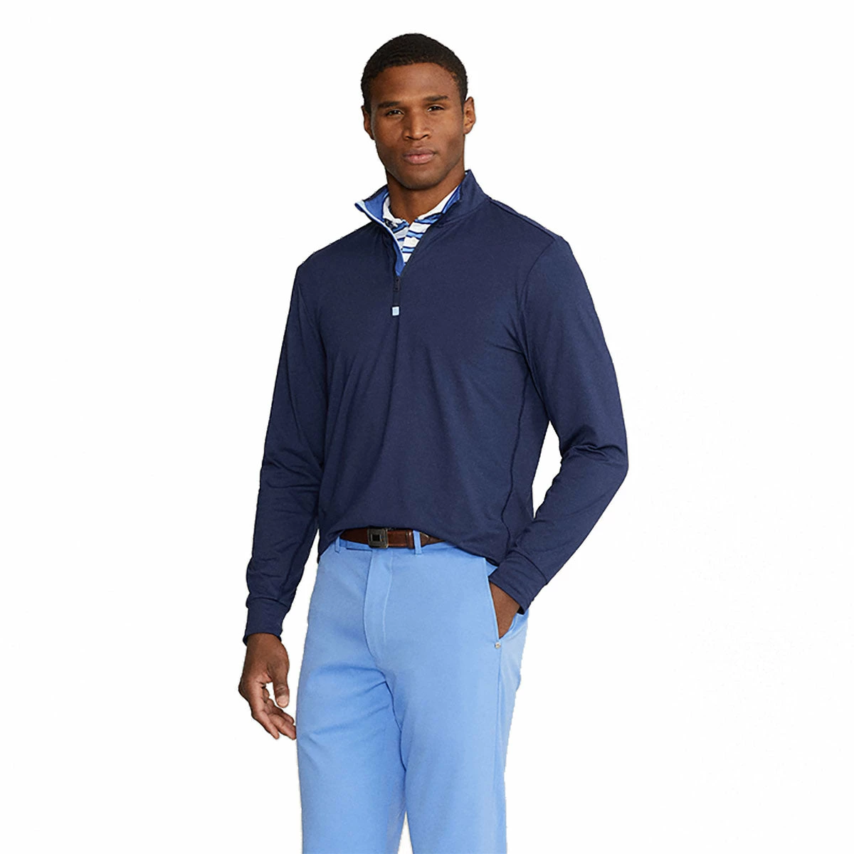 Subtle style, incredible comfort and unexpected performance are what you get with the Polo Stretch Peached Jersey Golf 1/2 Zip. Ths lightweight pullover is the perfect option for brisk days and is made with a soft, moisture wicking fabric that pulls sweat from the body to keep you dry and comfortable throughout every round. There is also a generous amount of stretch that provides added mobility with every golf swing, making this a fan favorite.